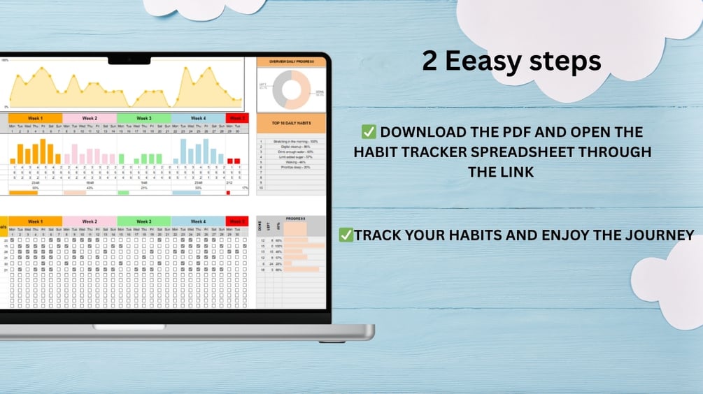 This interactive habit tracker is simple and customizable, with no ads. Track your daily, weekly, and monthly progress using checkboxes and charts. Pay once, keep it forever, and use it across your phone, tablet, or computer.